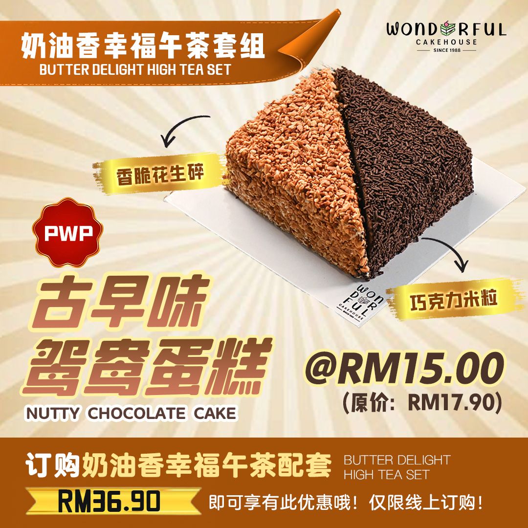 With any purchase of the tea set, enjoy the Nutty Chocolate Cake as a PWP for only RM15.00. Soft, fragrant, and melt-in-your-mouth—kids and adults will both adore it.